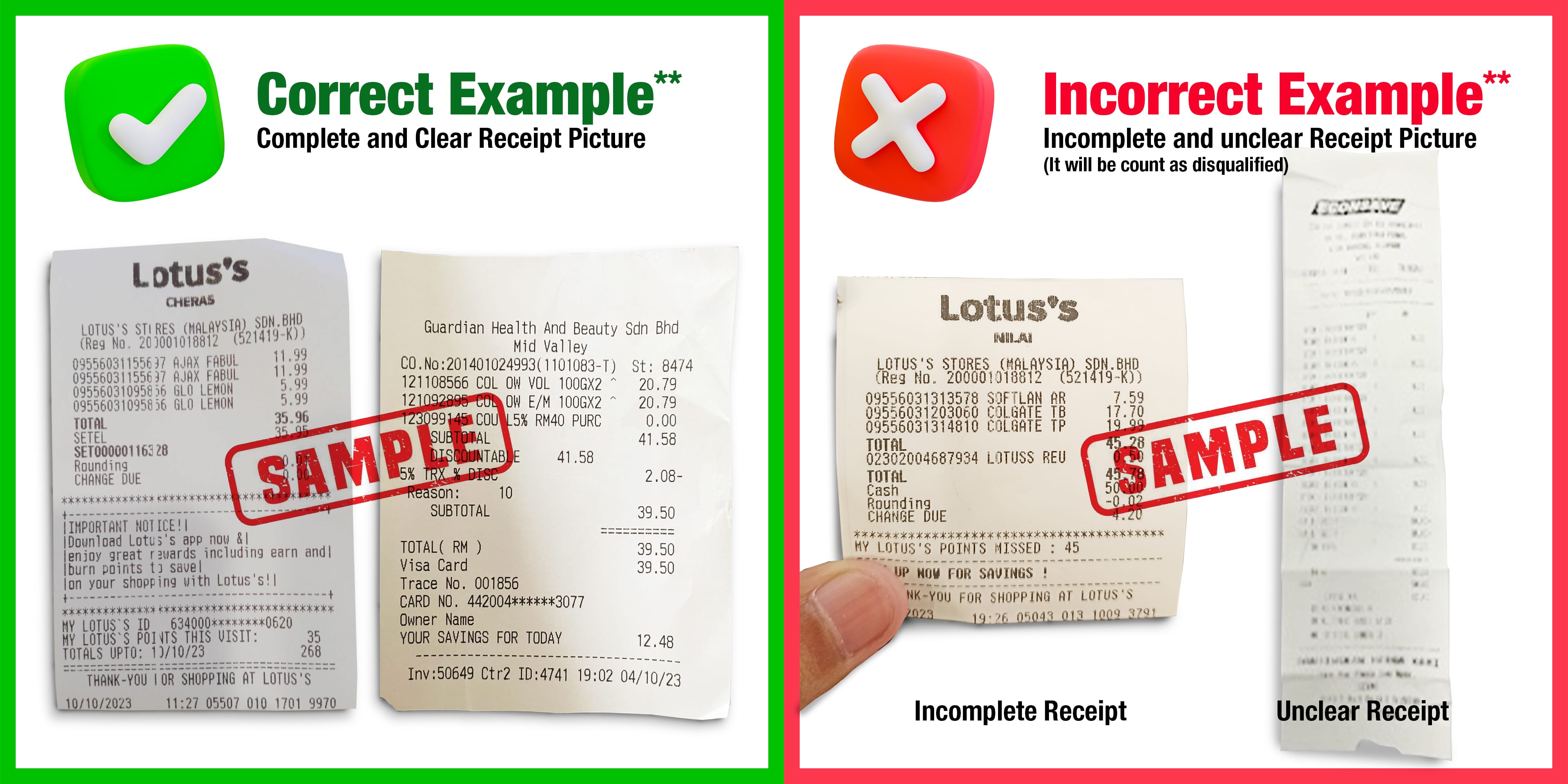 17. Pihak penganjur berhak membatalkan kelayakan para peserta secara automatik bagi sebarang penyertaan yang tidak lengkap, sukar dibaca, rosak, lewat atau tidak mempunyai bukti pembelian yang sah.